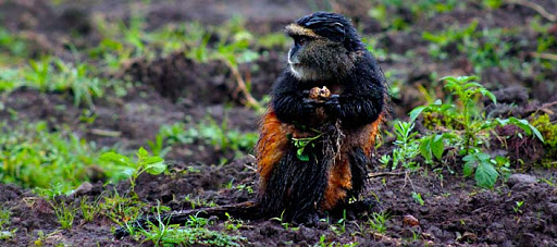 Golden monkey is the second famous attraction in Volcanoes national park. They are found on the mountain bamboo vegetation. They are all habituated troops of Golden monkeys that can be tracked by tourists. There are over 80 habituated golden monkeys in Volcanoes national park that are tracked daily by travelers.